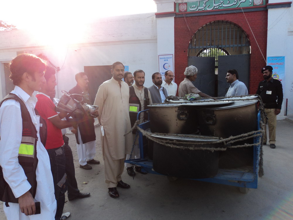 عید قربان 2010کے موقع پر الخدمت فاؤنڈیشن ضلع گجرات کے صدر سید ضیا ء اللہ ایڈووکیٹ،چانگیو ترکی کے نمائندے مصطفی عشکری ،ڈاکٹر طارق سلیم و دیگر کارکنا ن نے گجرات جیل کا دورہ کیا اور تقریباََ1500قیدیو ں کے لیے 2سے 3دن کا کھانا بھی فراہم کیا۔